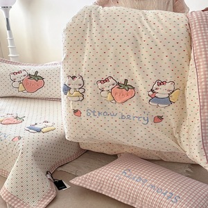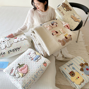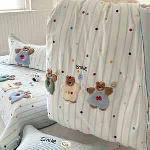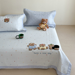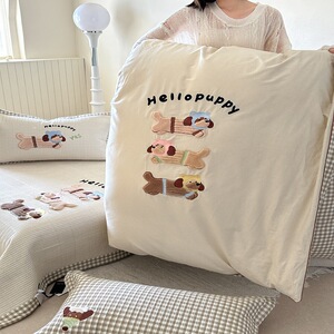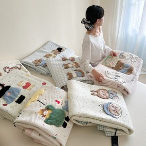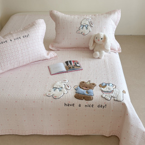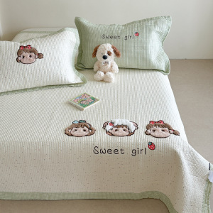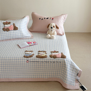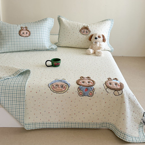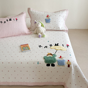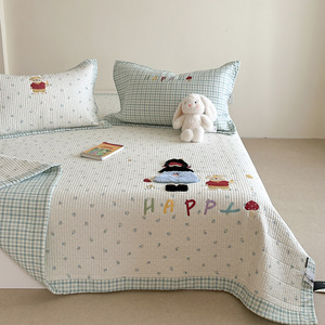 CELlNG卡通刺绣双面全棉床盖三件套被套四件套夹棉绗缝床单四季款