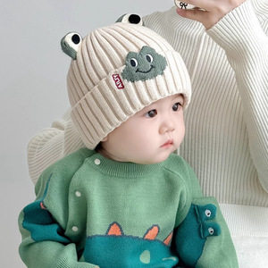 婴幼儿毛线帽秋冬季韩版可爱青蛙男女宝宝韩版针织套头护耳保暖厚