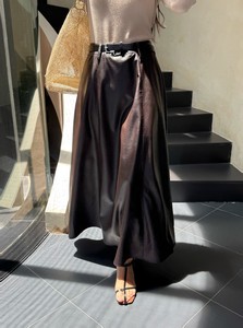 DIGM | 2025秋冬极简朋克高腰A字长裙拼接皮裙腰带半身裙女A32081