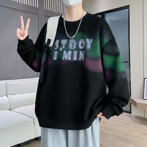 春秋款圆领卫衣男孩高中初中学生帅气长袖t恤青少年大童男装上衣