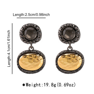 E14147秋季中古满钻拼色耳坠肌理感纹理耳环 ZA复古宫廷风耳饰女