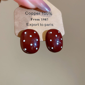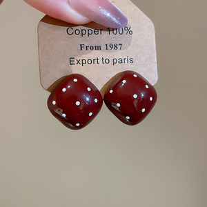 银针椭圆正方形波点纯色时尚耳钉复古秋冬新款耳环轻奢高级感耳饰