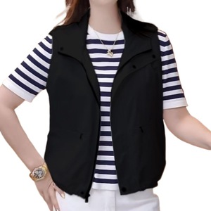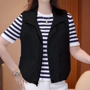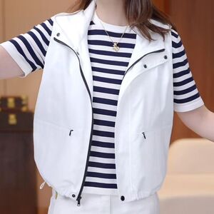 欧洲站2025春款女装欧货马夹连帽纯色时尚马甲坎肩女百搭显瘦直销
