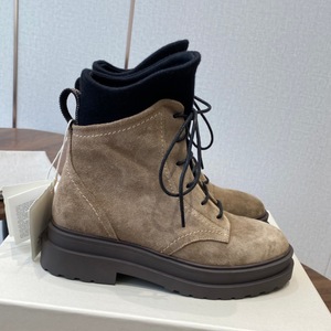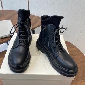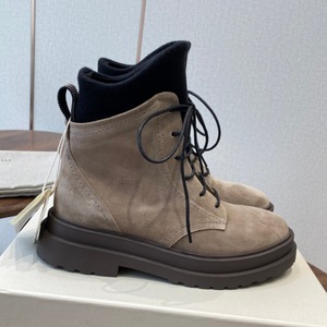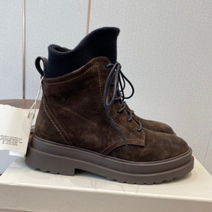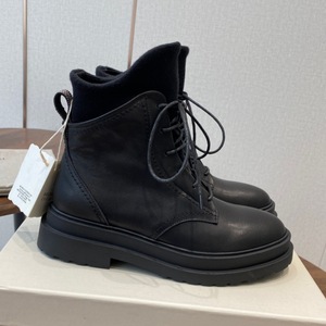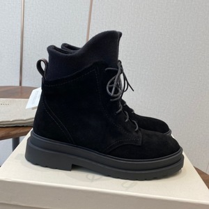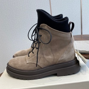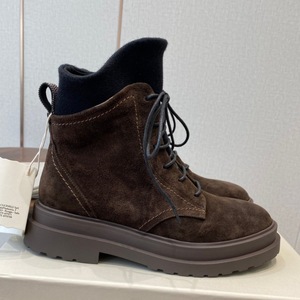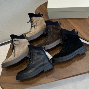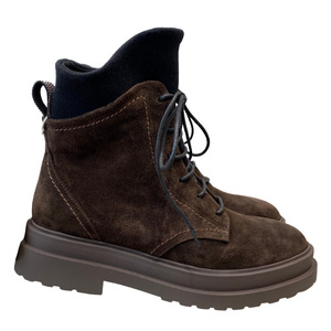 欧美BC女士复古厚底马丁靴圆头牛反绒拼接珠链装饰百搭短筒矮靴