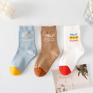 秋季儿童袜子男童女童提花休闲棉袜字母无骨笑脸字母大童中筒袜