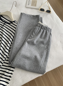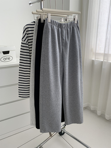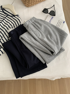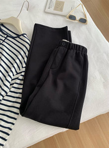 韩版一粒扣拼接直筒休闲裤女垂感显瘦弯刀裤2025秋季高腰阔腿卫裤