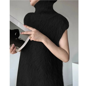 高领针织仿水貂绒衣女秋冬中长款宽松慵懒叠穿马甲背心无袖上衣潮