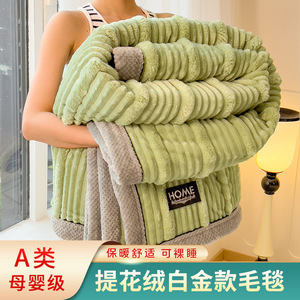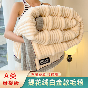a类兔毛绒毛毯冬季加厚珊瑚绒毯子双面盖毯办公室沙发车载双层毯