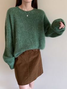 2025秋冬新款复古绿色软糯内搭外穿设计感宽松慵懒针织毛衣女装潮