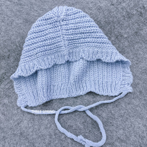 批发韩国2025年新款纯色甜美系带花边针织帽保暖护耳显脸小雷锋帽
