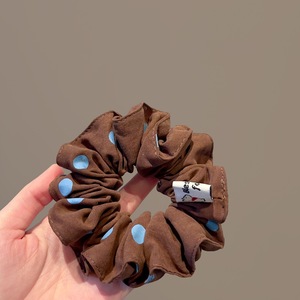 2025新款棕色布艺波点肠圈发绳韩系百搭扎马尾发饰皮筋发圈头绳女