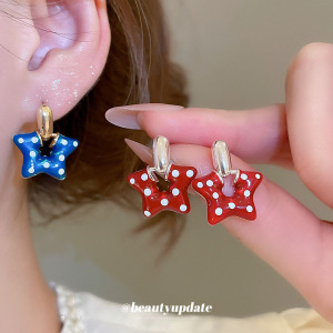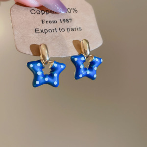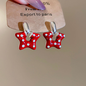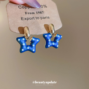 银针滴油波点星星吊坠耳钉卡通可爱气质耳环耳坠小众设计感耳饰女