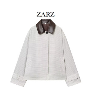 ZARZ 自制 欧美风 新款女装 时髦 休闲款皮革领短款风衣3811248