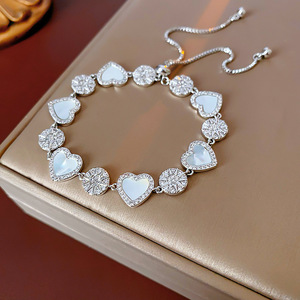 55#银色-蓝色-爱心锆石心形椭圆形蝴蝶手链