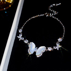 58#银色-白色-镶钻锆石蝴蝶猫眼石手链