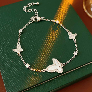 54#银色-锆石贝母蝴蝶吊坠手链