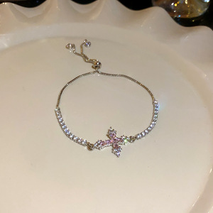 47#银色-粉色-锆石十字架吊坠抽拉式手链