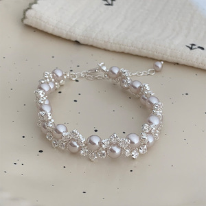 51#银色-灰色-锆石珍珠不规则圆形手链