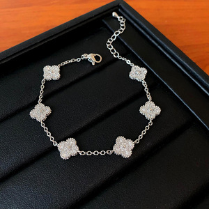 15#真金电镀-银色-代白金四片叶子锆石卡扣手链