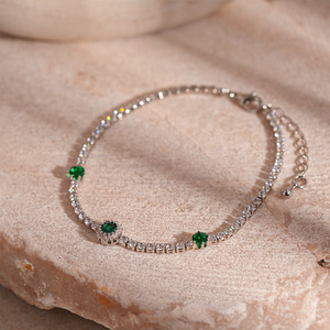 13#银色-绿色-锆石方形手链