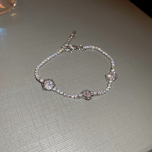 22#银色-锆石圆形花朵手链