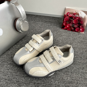 女王范白色复古厚底魔术贴德训鞋女2025新款秋季百搭阿甘运动鞋