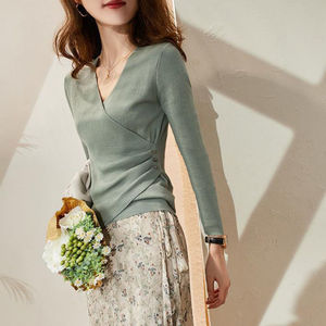 2025新款V领交叉打底衫修身长袖毛针织衫套头内搭上衣女ins潮圆扣
