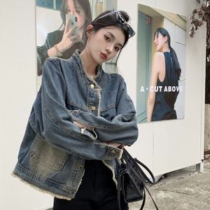 山力达迪设计港风复古毛边水洗2025口袋新款牛仔外套宽松显瘦上衣
