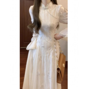 新中式气质立体蝴蝶旗袍连衣裙女装秋冬新款白色仙气高端国风裙子