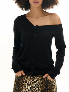 羊毛斜肩不规则领针织开衫小众设计轻薄亲肤修身显瘦慵懒长袖上衣