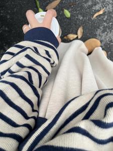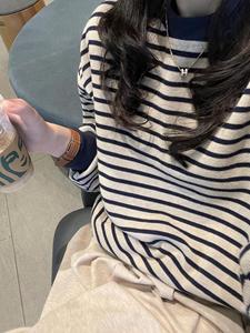 复古条纹长袖圆领卫衣女秋装2025新款宽松设计感休闲毛衣针织上衣