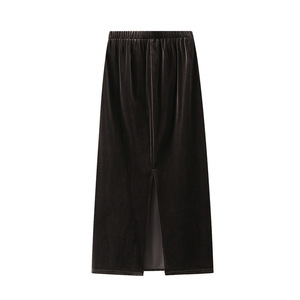 半身裙2025秋简约丝绒裙气质直筒裙中长显瘦裙子包臀开叉裙0820