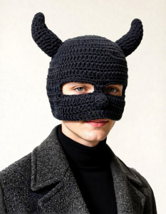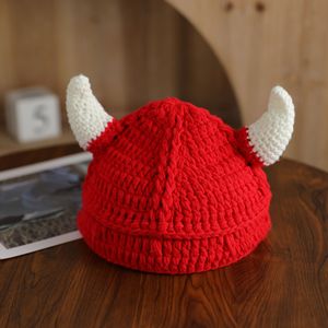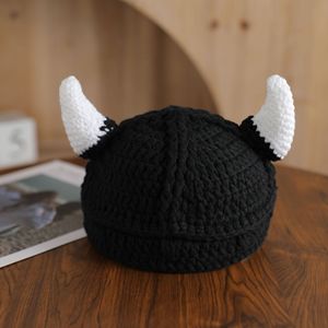 牛角帽系列大全跨境热卖纯手工搞怪帽子万圣节恶魔毛线帽子