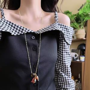 甜美少女红色小鱼虎眼石圈圈树叶吊坠项链女小众设计时尚气毛衣链