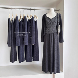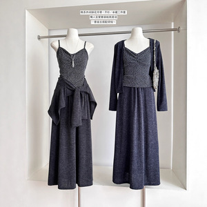 针织开衫+碎花显瘦吊带背心+松紧腰a字半裙套装2025秋季新款