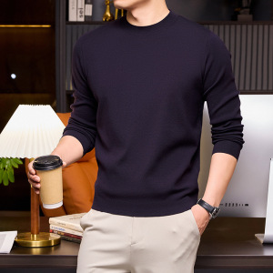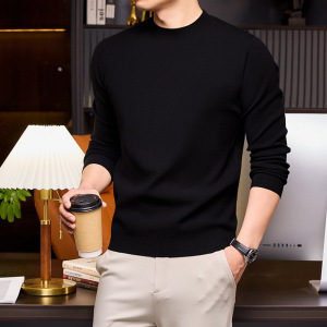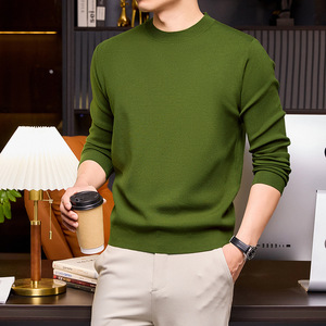 跨境2025冬季圆领男加厚款休闲商务低奢长袖纯色针织毛衣打底男士