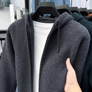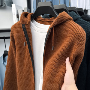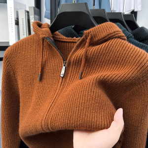 重磅全新保暖针织衫加厚上衣毛衣秋冬新款连帽拉链开衫上衣外套