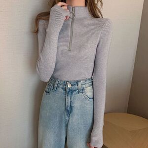 洋气半高领拉链打底衫时尚修身显瘦上衣女内搭气质秋冬针织衫毛衣