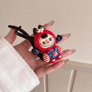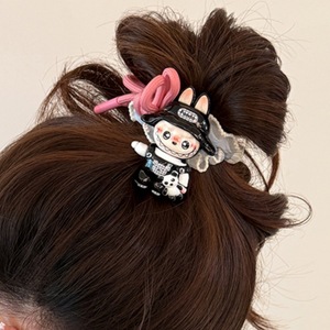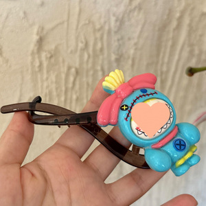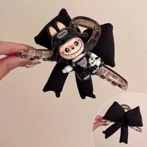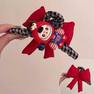 棕咖系AB面抓夹卡通小熊仔蝴蝶结盘发夹2025新款格纹大号鲨鱼夹女