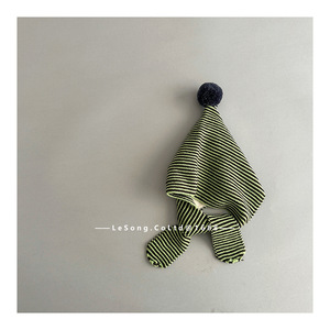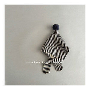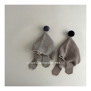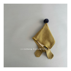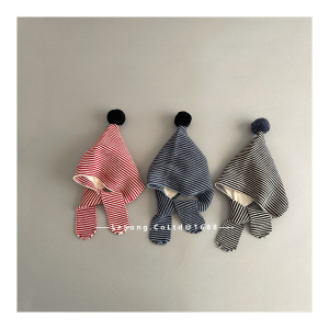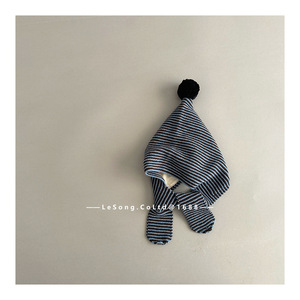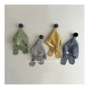 ins可爱条纹儿童围巾一体帽秋冬保暖男女童尖顶毛线帽宝宝护耳帽