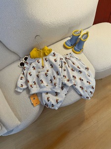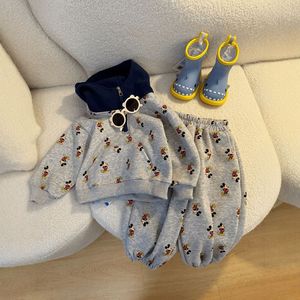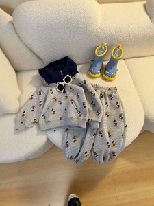 男女童连帽卫衣套装春秋季韩版卡通米奇卫裤儿童宝宝拼色上衣外穿