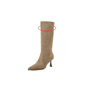 尖头高跟短靴女2025秋冬新款细跟绒面中筒堆堆靴软皮杏色瘦瘦靴女