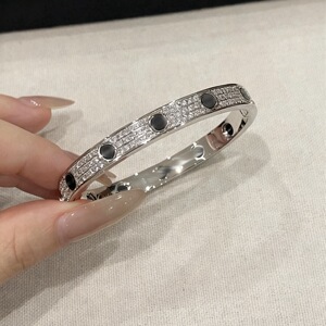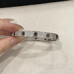 高版本陶瓷黑钉宽版满天星手镯CNC精工V金镀18 K情侣手环跨境专供