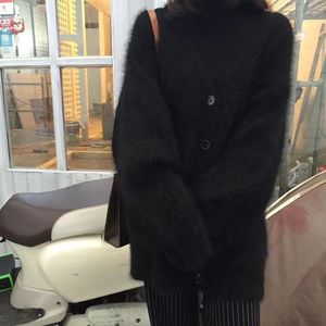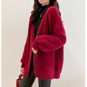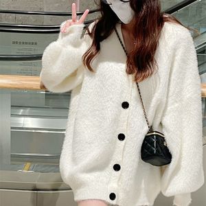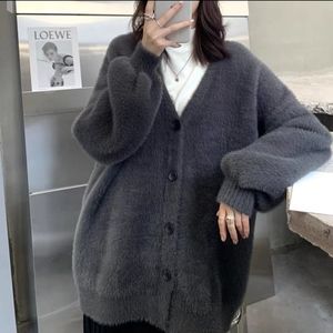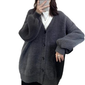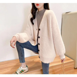 韩版秋冬新款慵懒风仿水貂宽松毛衣女休闲大码针织开衫上衣外套女
