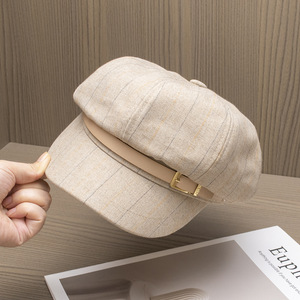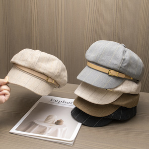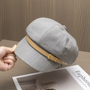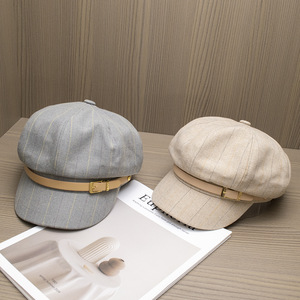 日系复古条纹皮带扣八角帽女户外街头显脸小报童帽时尚百搭画家帽