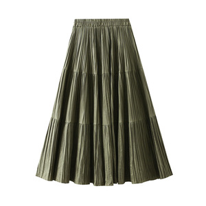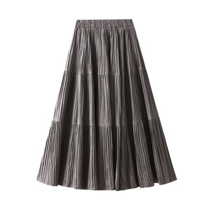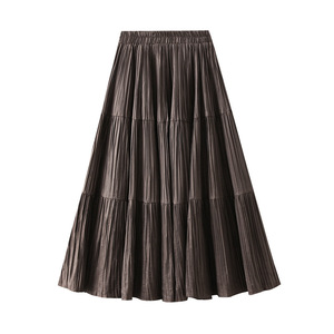 秋冬压褶拼接大摆百褶半身裙2025秋季新款显瘦垂坠感蛋糕长裙8958