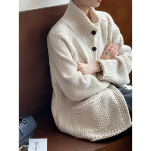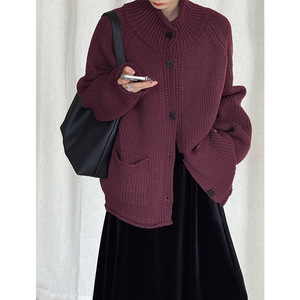 橘芷 早秋新款舒芙蕾针织开衫休闲复古毛衣立领宽松毛衫外套 1873