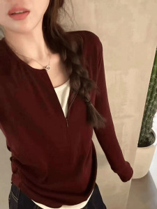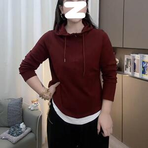 大码假两件不规则连帽长袖T恤女秋冬mm遮肉显瘦打底衫正肩上衣