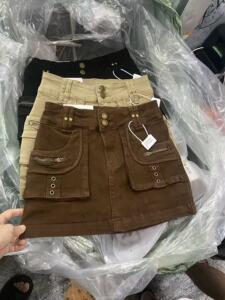 韩魅儿实拍高腰美式工装牛仔短裙2025新款字裙显瘦包臀裙裙裤1809