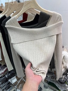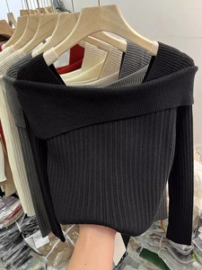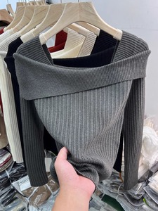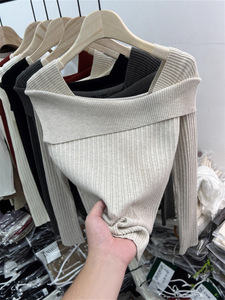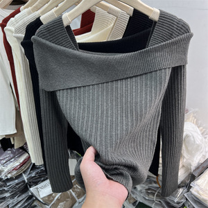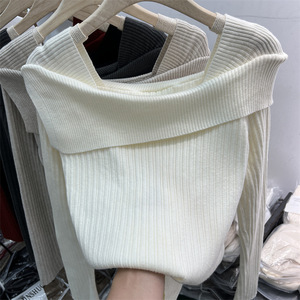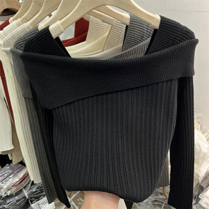 设计感一字肩针织衫女2025秋季新款打底衫内搭毛衣小众高级感上衣